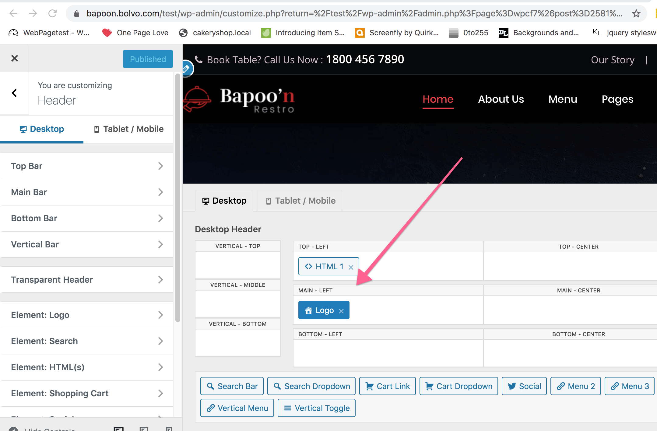 To customise the default header, please go to Default customiser of WordPress. There you will find options to change header stuff. For example, here are the steps to change the logo.